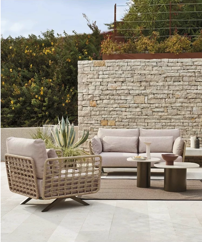 戶外沙發茶幾室外庭院花(huā)園防水防曬藤(téng)編躺床別墅露天休閑家具(jù)