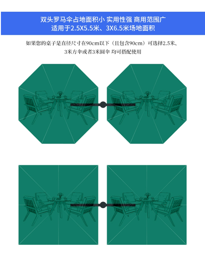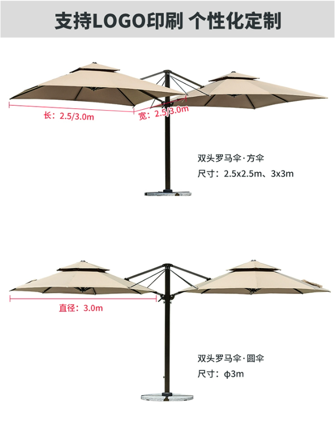 雙(shuāng)頭羅馬傘室外大(dà)傘遊泳池沙(shā)灘傘